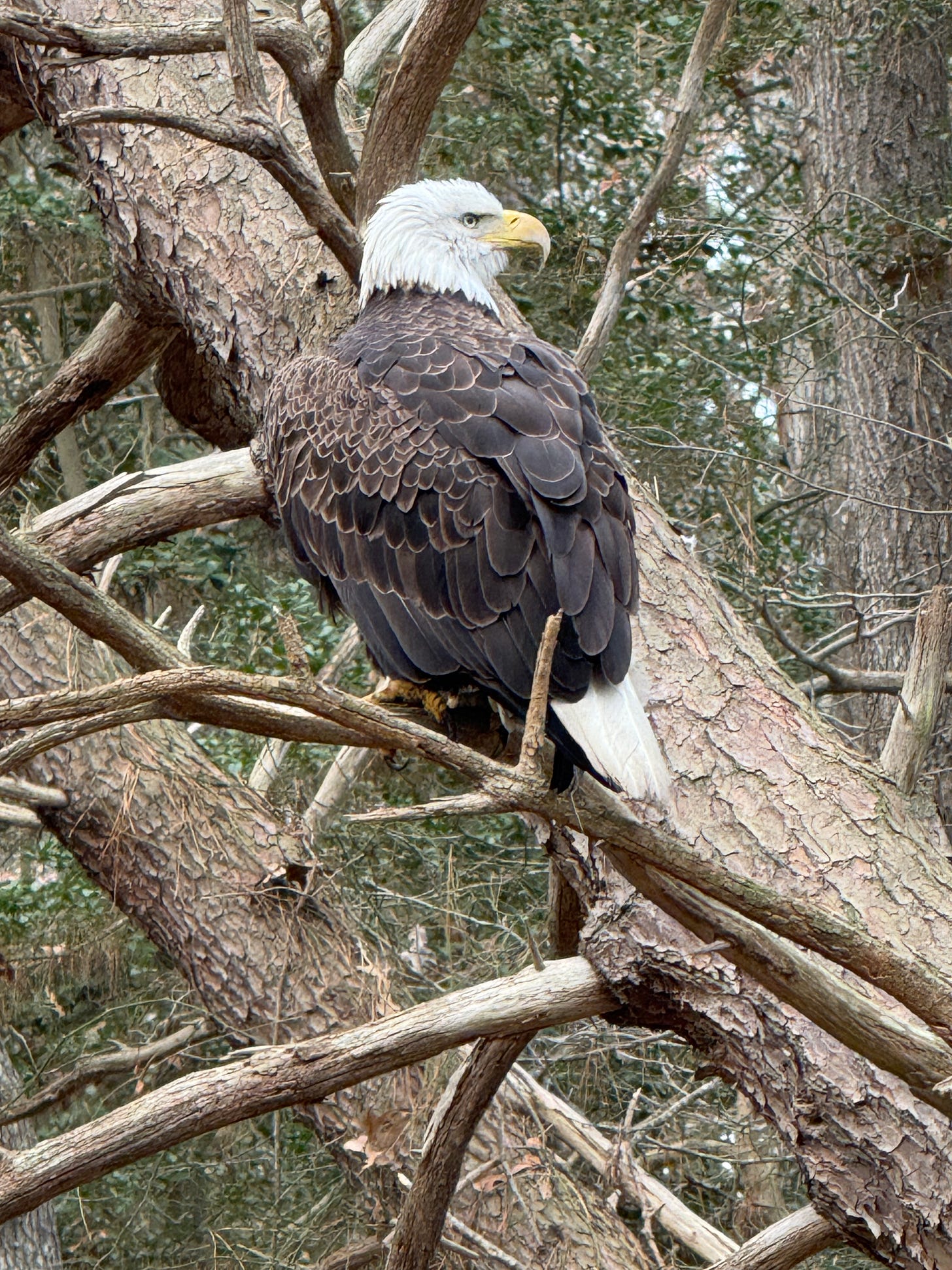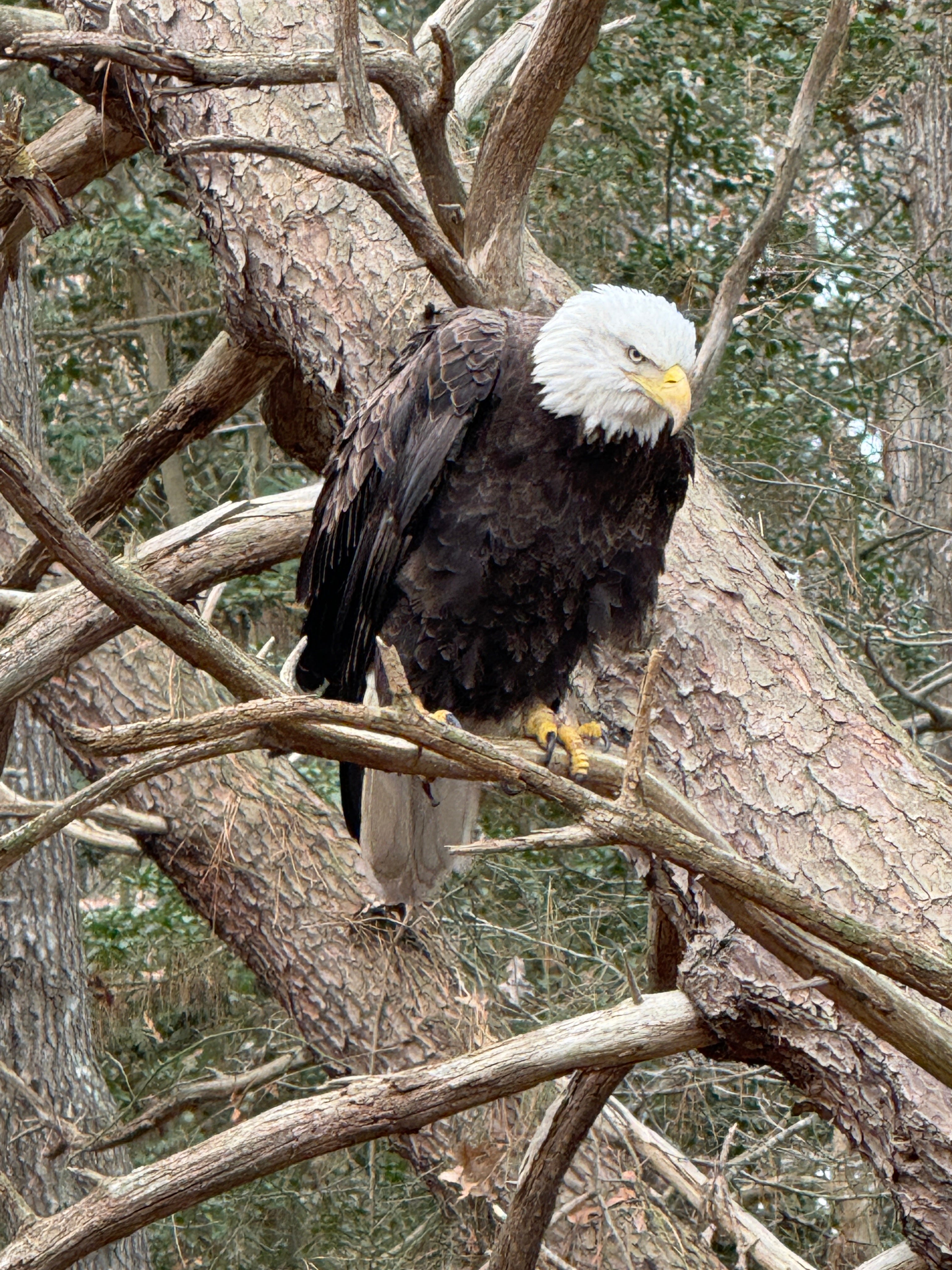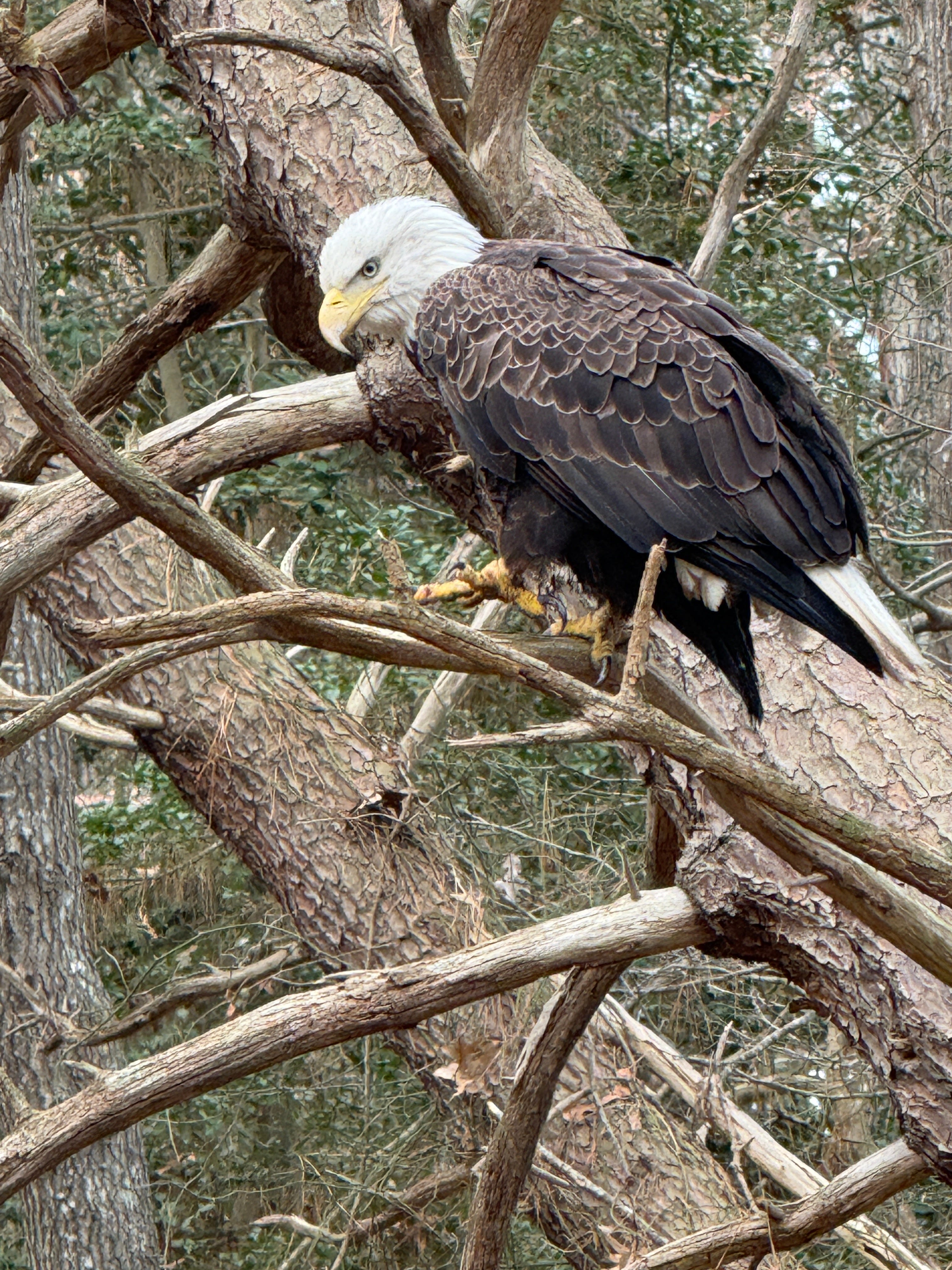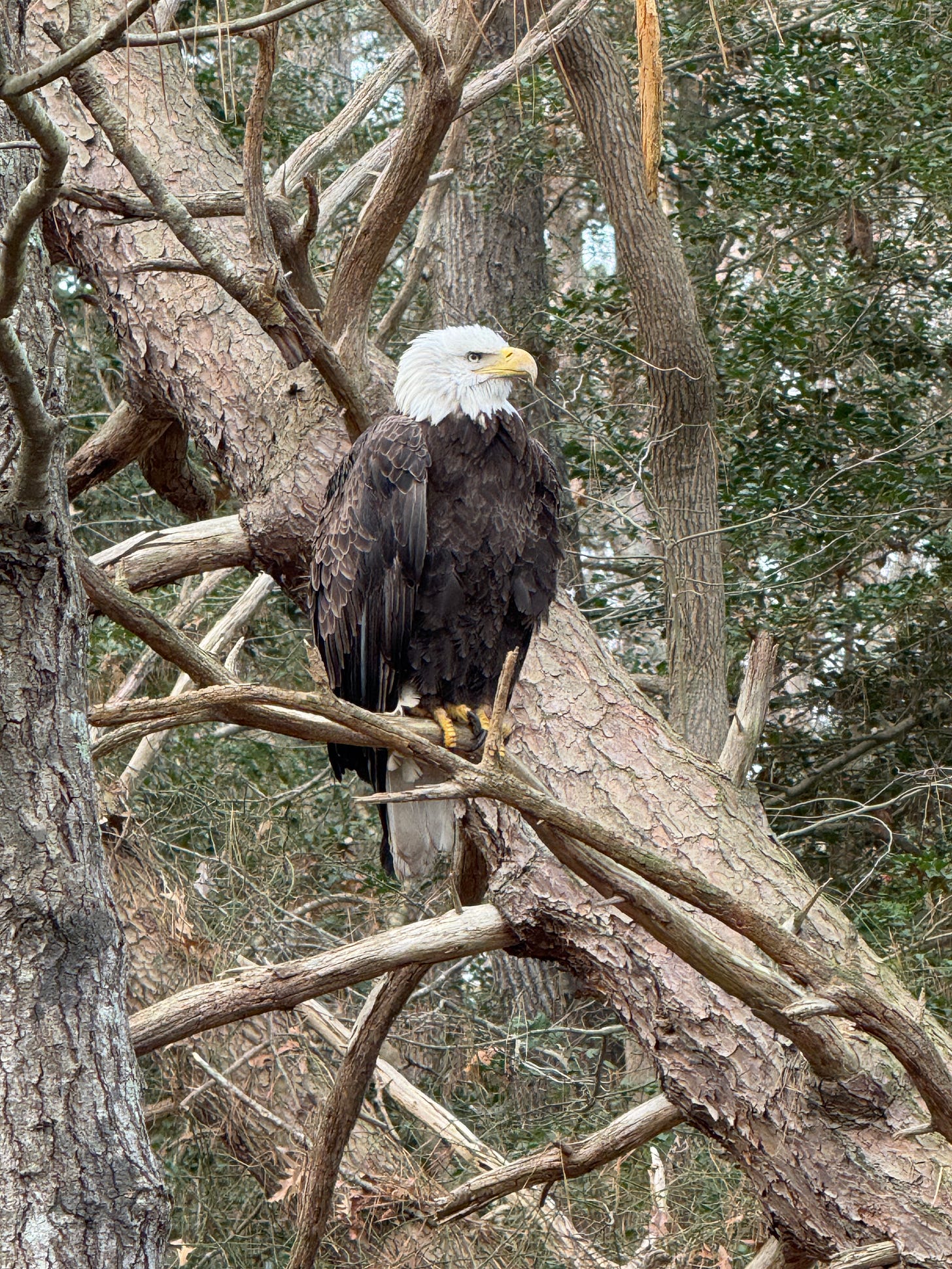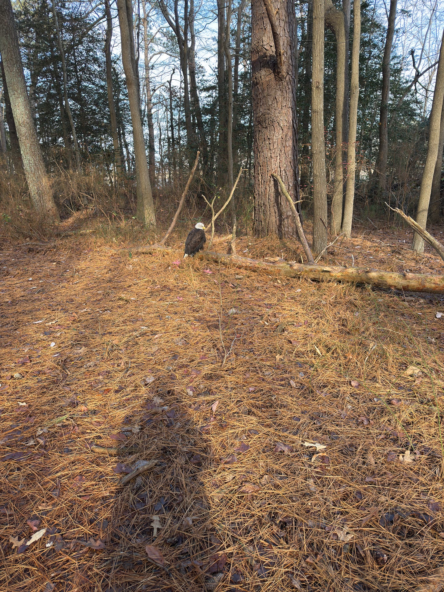 And the eagle landed… safe and sound in a carrier so it can be transferrred safely for rehab.